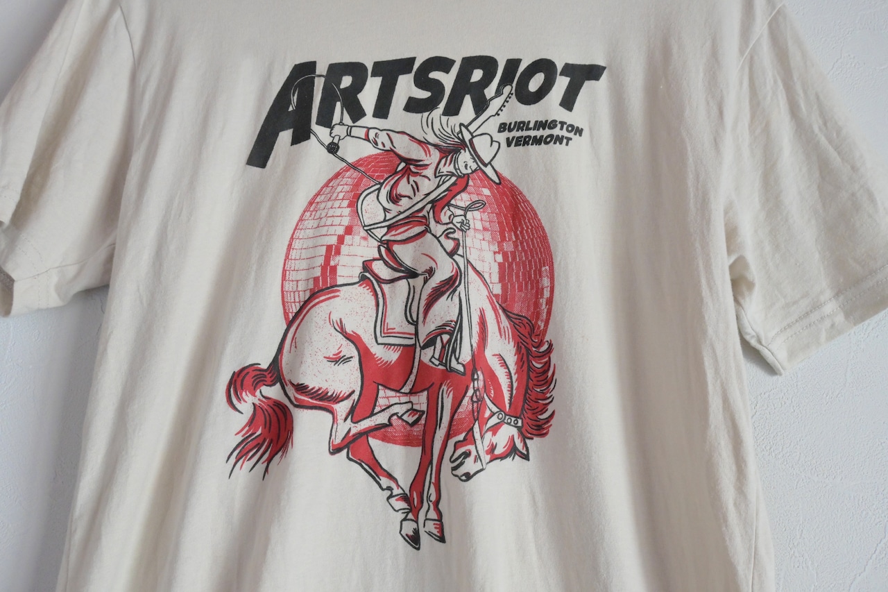 ARTSRIOT はアメリカのバーモント州バーリントンにあるアート、音楽、食を提供する施設だったようです。これはシルエットが細身で生地感薄くて柔らかいのでインしてきた時のおさまりが良しです◎